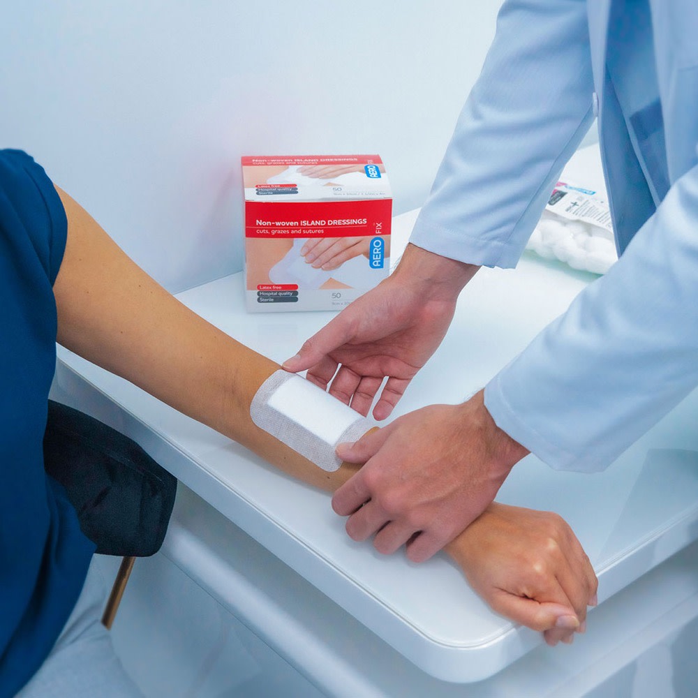 AEROFIX Non-Woven Island Dressing is a sterile, latex-free adhesive dressing designed for simple, effective coverage of larger wounds, abrasions and sutured sites. A soft, conformable non-woven backing helps the dressing sit smoothly over body contours while maintaining reliable fixation. The island design focuses coverage where it is needed and keeps edges low-profile for comfortable wear under clothing and during movement.