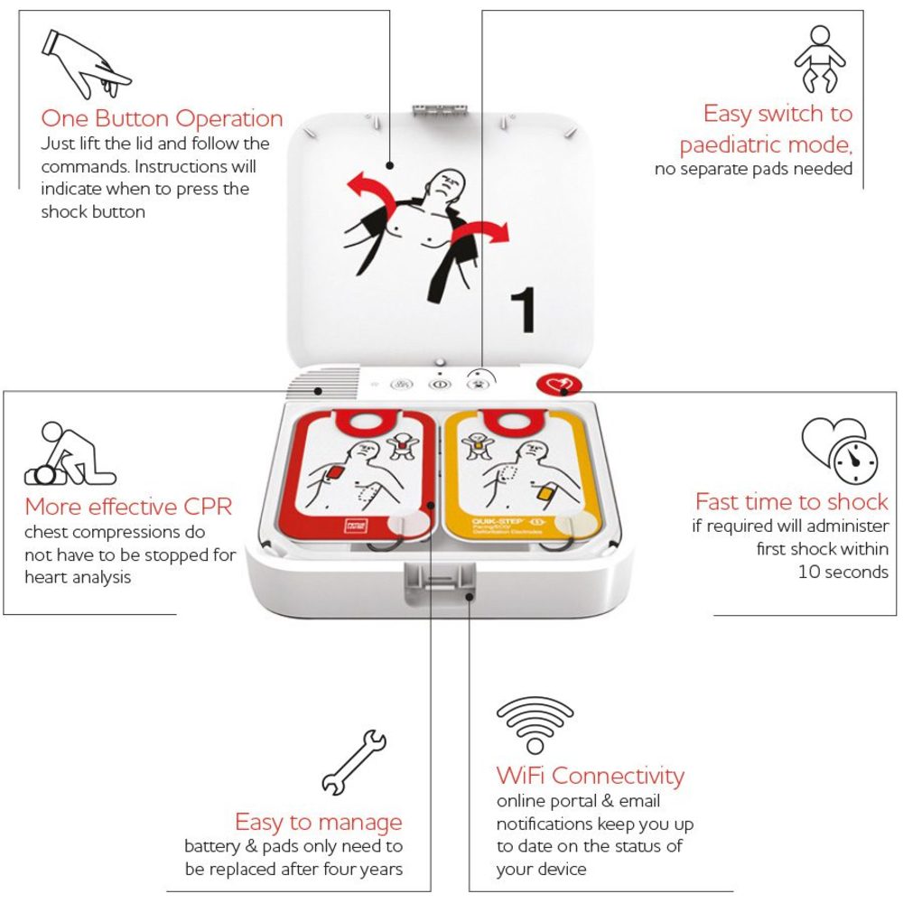 - Automatic notifications: Immediate alerts when AED is used or requires servicing.